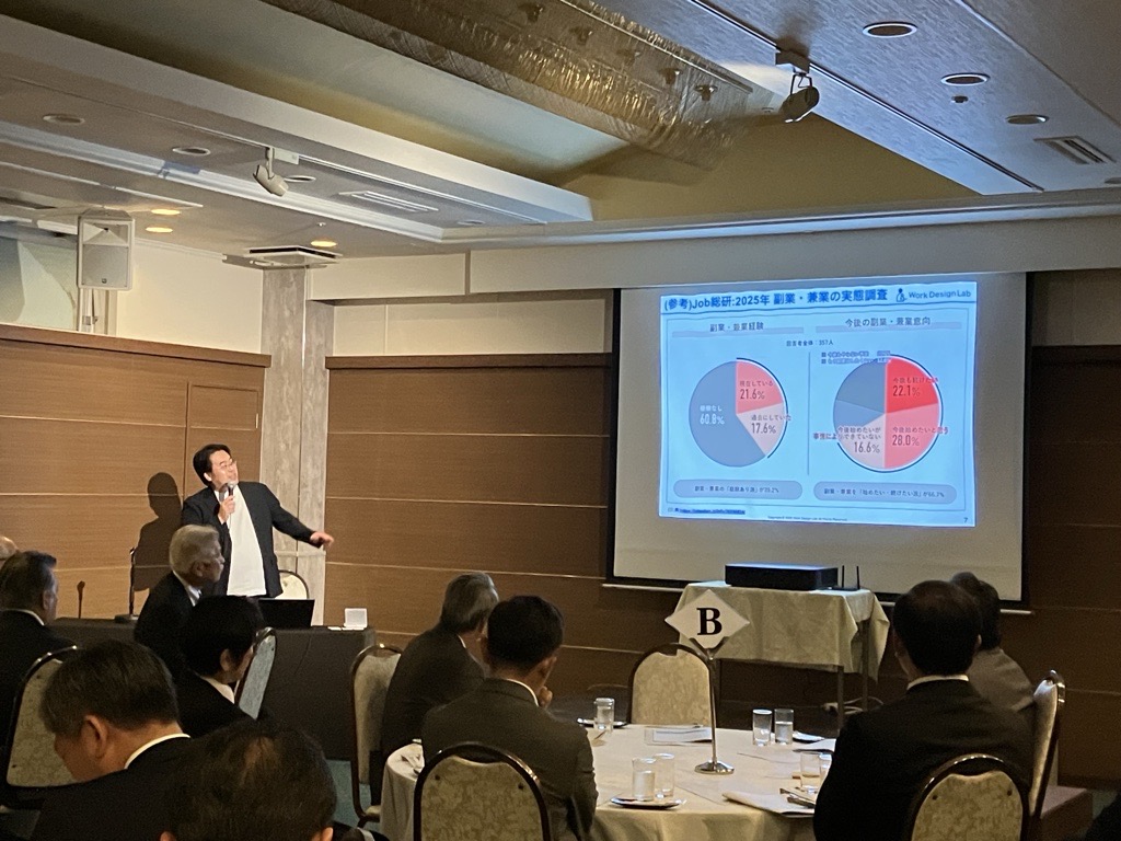 長崎の中小企業は人口減少や若手流出の影響で慢性的な人手不足に直面し、育成が追いつかず新しい挑戦にリソースを割けない構造的課題を抱えている。従来の「フルタイム社員前提」の人材戦略では限界があり、外部人材を活用した人的資本経営とエンゲージメント向上が重要性を増している。人的資本経営とは人材をコストではなく投資対象と捉え、スキル・経験・意欲を最大化して企業価値を高める考え方であり、情報開示要請や若手世代の価値観変化(柔軟性・成長・意義)を背景に注目されている。本講演では制度対応よりもエンゲージメント向上の視点に焦点を当てる。
